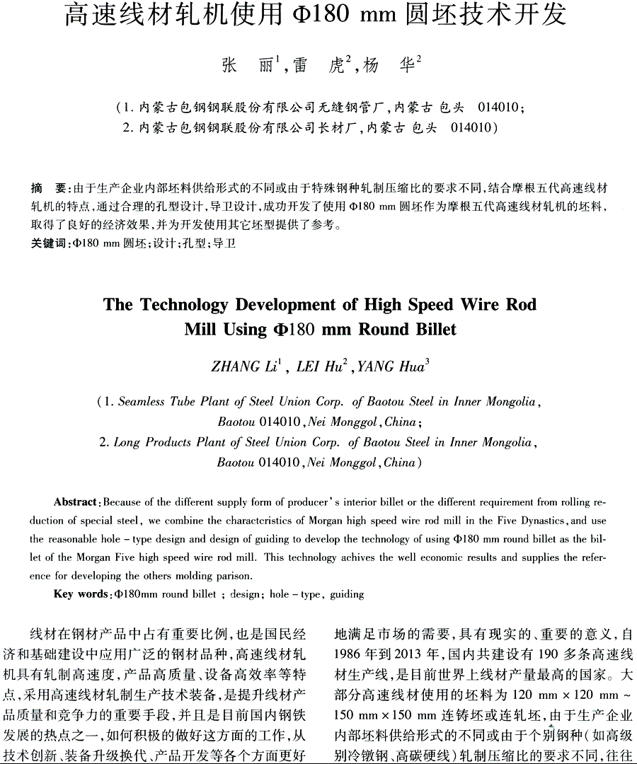高速線材軋機使用Φ180mm圓坯技術(shù)開發(fā)