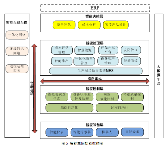 ERP系統(tǒng)、產(chǎn)銷一體化管理系統(tǒng)、MES系統(tǒng)及過程自動化、基礎(chǔ)自動化系統(tǒng)構(gòu)建了完整的企業(yè)自動化、信息化管理系統(tǒng)。各級系統(tǒng)在銷售、物流、生產(chǎn)、質(zhì)量、能源等各方面緊密配置,實現(xiàn)了從智能決策、智能管理、智能制造到智能裝備的全面的智能車間架構(gòu)。