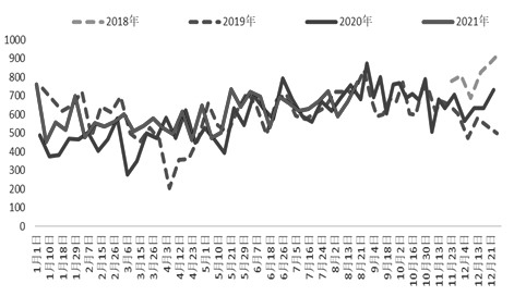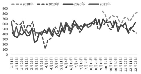 圖為澳大利亞發(fā)中國發(fā)貨量(單位:萬噸)