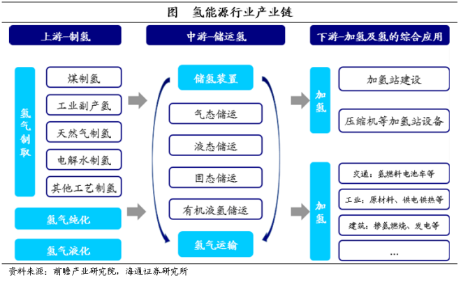 氫能是指氫在物理與化學變化過程中釋放的能量,它是一種理想的二次能源,被認為是全球能源轉型的重大戰(zhàn)略方向。其產(chǎn)業(yè)鏈分為上游制氫、中游儲運和下游終端消費三個環(huán)節(jié),涉及的產(chǎn)業(yè)領域非常廣泛。