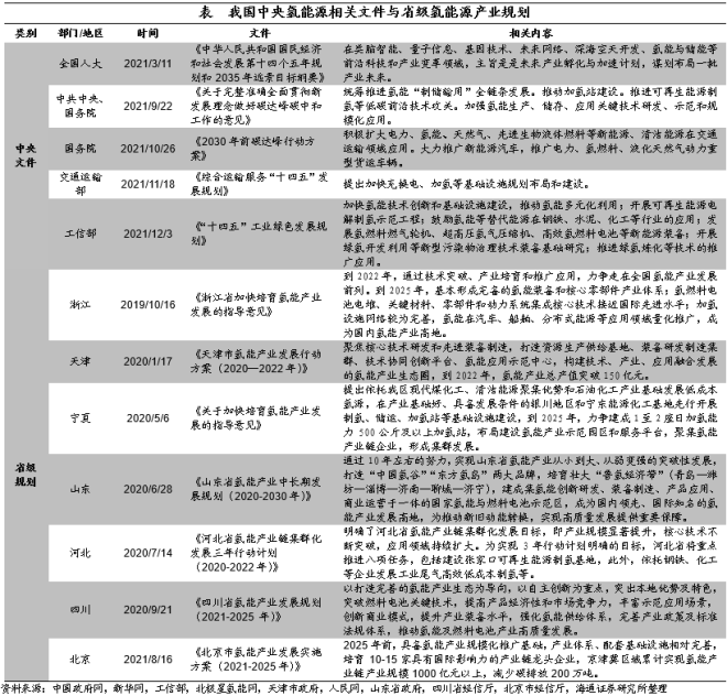 在我國,2021年9月22日,中央碳達峰、碳中和“1+N”政策體系中首個頂層設計文件《關于完整準確全面貫徹新發(fā)展理念做好碳達峰碳中和工作的意見》,著重提到了“統(tǒng)籌推進氫能‘制儲輸用’全鏈條發(fā)展”,“推動加氫站建設”,“推進可再生能源制氫等低碳前沿技術攻關”,“加強氫能生產(chǎn)、儲存、應用關鍵技術研發(fā)、示范和規(guī);瘧”等氫能源產(chǎn)業(yè)的重要舉措。與此同時,各地政府也將氫能領域作為實現(xiàn)“雙碳”目標的重要抓手。