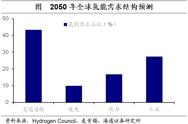 對比國際上的路線圖,我們預計實際增速可能高于此,或將在6%左右。國際能源署在《2050年凈零排放——全球能源部門路線圖》中預測,為實現(xiàn)在2050年碳中和,全球對氫氣的需求將從2020年的0.87億噸增長至5.3億噸,年均增長6.2%。而國際氫能委員會在2021年11月的報告《凈零氫能報告》中也提到,為實現(xiàn)碳中和、全球降溫1.5度的目標,到2050年,全球對氫氣的需求為6.6億噸,占全球最終能源需求的22%,年均增速達7.0%。這兩個目標均較國內(nèi)機構要更積極,也就是說,如果碳中和的進程需要加快,氫能源行業(yè)發(fā)展也會進一步提速。