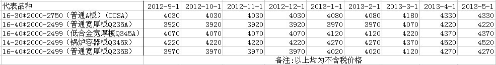 寶鋼寬厚板2012年9月份-2013年5月份調(diào)價情況匯總