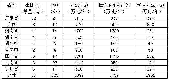 二、南方區(qū)域建筑鋼材產(chǎn)線產(chǎn)能總體情況介紹