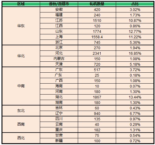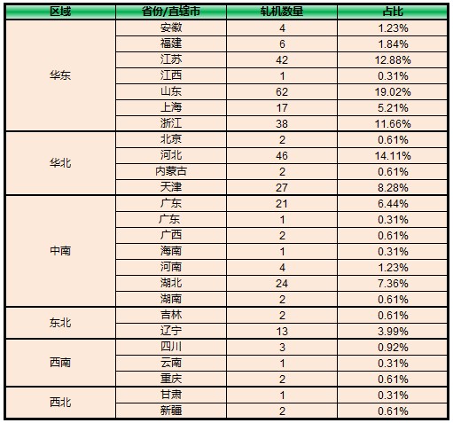 圖一:我國產(chǎn)線區(qū)域分布情況