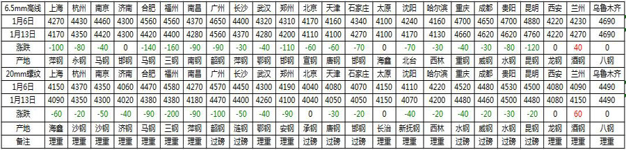線材螺紋市場(chǎng)周評(píng)(1.6-1.13)