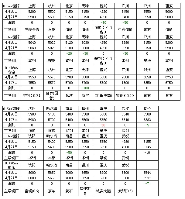 鍍鋅彩涂市場(chǎng)周評(píng)(04.20-04.27)