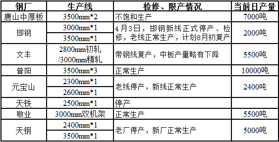 本周鋼廠產(chǎn)能利用率依然處于高位,市場(chǎng)到貨較好,周一文豐帶鋼線復(fù)產(chǎn),中板日產(chǎn)量降至5500噸,普陽(yáng)正常生產(chǎn),日產(chǎn)量10000噸。周一,文豐、普陽(yáng)中板鎖價(jià)下調(diào)至3150元/噸,文豐接單2萬(wàn)余噸,普陽(yáng)接單4萬(wàn)余噸;周二,鎖價(jià)上調(diào)至3170元/噸,現(xiàn)有訂單可維持生產(chǎn)1周左右。唐山中厚板中板日產(chǎn)量7000噸,周五出臺(tái)7月上旬結(jié)算價(jià)格3220元/噸,鎖價(jià)報(bào)價(jià)3180元/噸,量大可優(yōu)惠至3160元/噸。周一,天鋼出臺(tái)價(jià)格政策,06月26日-07月05日新廠16-20mm普中板結(jié)算價(jià)格為3290元/噸,完成協(xié)議量?jī)?yōu)惠50元/噸。