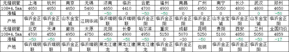 【東北地區(qū)】本周東北市場(chǎng)無(wú)縫管價(jià)格趨弱運(yùn)行,需求較差。截至5月10日,東北地區(qū)108*4.5mm無(wú)縫管沈陽(yáng)報(bào)4850元/噸,較5月10日價(jià)格下跌50元/噸;長(zhǎng)春報(bào)4900元/噸,較5月10日穩(wěn);哈爾濱報(bào)4950元/噸,較5月10日價(jià)格下跌50元/噸,過(guò)磅含稅價(jià)格。