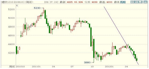 無論從趨勢還是從短線上看,RB1210仍屬于空頭市場,需注意急跌后的技術性反彈,短線關注4000一帶的支撐
