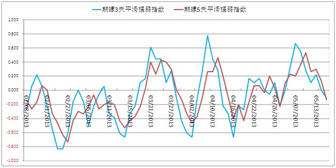 圖3 期螺3天及5天平滑強弱指數(shù)
