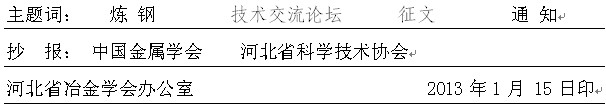 希望廣大科技人員踴躍投稿。會(huì)議對(duì)優(yōu)秀論文將推薦到《河北冶金》雜志社。