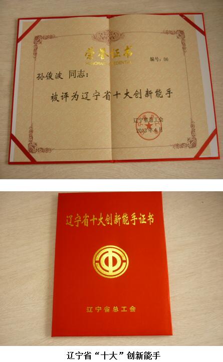2013年被授予遼寧省“十大”創(chuàng)新能手。
