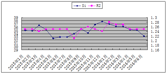 表1 一高爐2016年前半年的爐料結(jié)構(gòu)情況