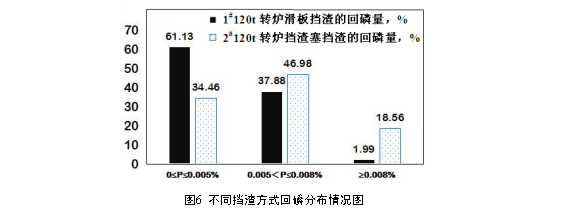 轉(zhuǎn)爐自使用滑板擋渣技術(shù)后,回磷量得到有效控制,為煉鋼系統(tǒng)生產(chǎn)低P鋼種創(chuàng)造了條件。