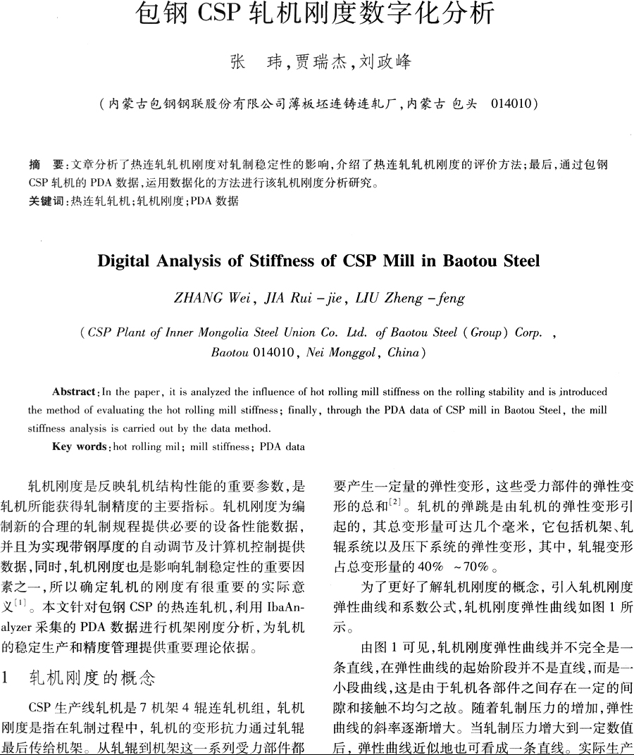 包鋼 CSP 軋機剛度數(shù)字化分析