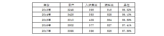 下表為3號高爐開爐幾年數(shù)據(jù)。