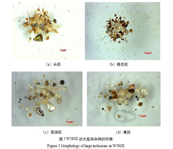 Table 5 analysis table of inclusions containing SiO2 in W590X head blank (%)