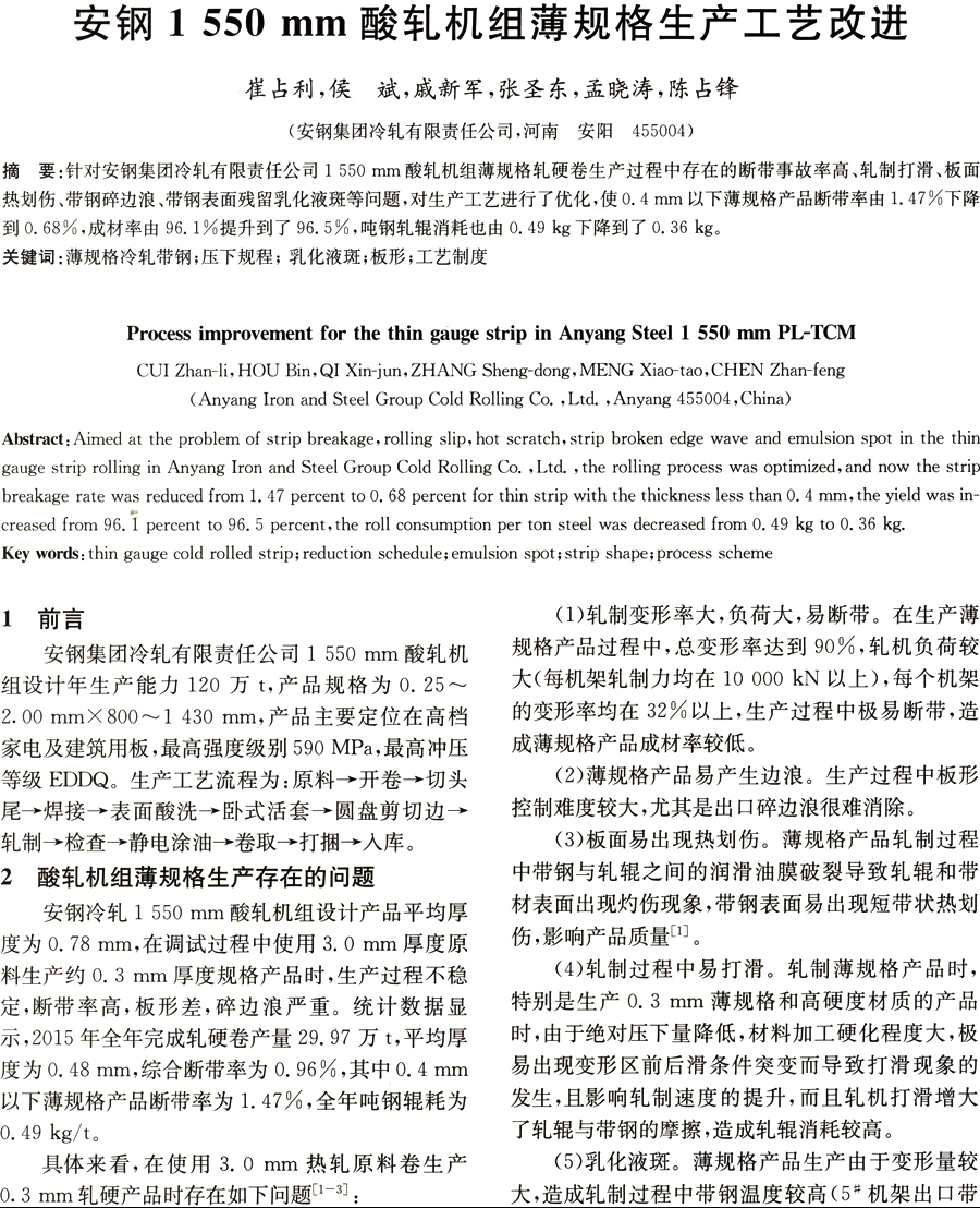 安鋼 1 550mm酸軋機組薄規(guī)格生產(chǎn)工藝改進