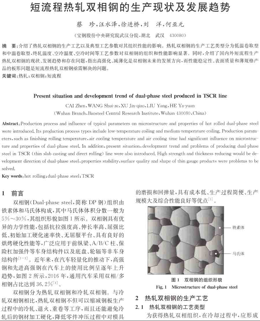 短流程熱軋雙相鋼的生產(chǎn)現(xiàn)狀及發(fā)展趨勢(shì)