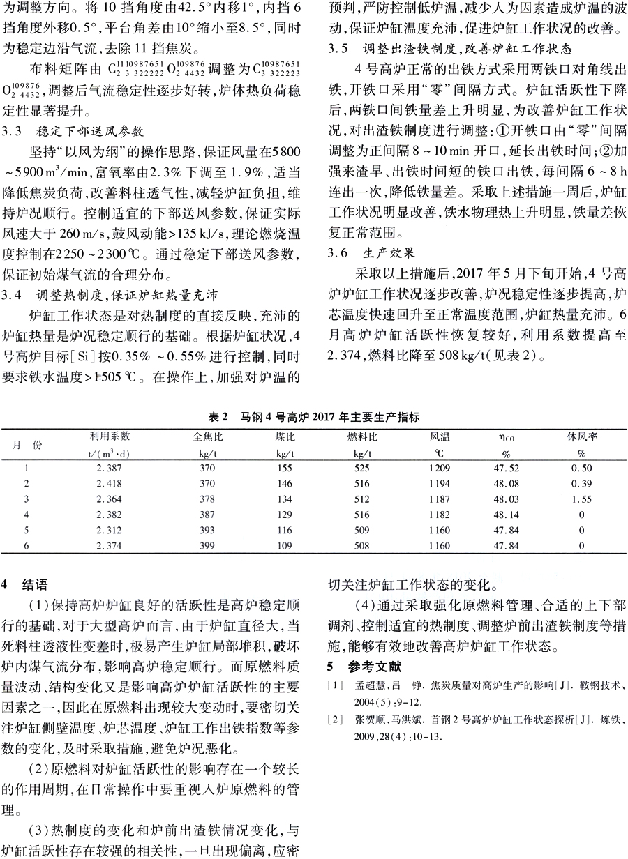 焦炭結構對馬鋼 4 號高爐爐缸活躍性的影響