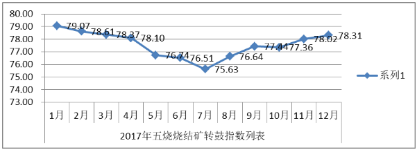 掉爐條(換臺車)等小耽誤明顯減少,燒結過程穩(wěn)定,轉鼓強度呈上升趨勢。