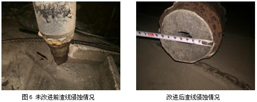 很明顯改進(jìn)后的的塞棒侵蝕相對(duì)較小,為更好的使用塞棒,主要是受外力造成,該棒頭為錐形,此種設(shè)計(jì)控流精度高,但強(qiáng)度相對(duì)較低,對(duì)塞棒機(jī)構(gòu)和安裝要求較高。安裝時(shí)盡量對(duì)中,不留啃頭量,減少調(diào)棒次數(shù),否則很容易造成塞棒掉尖的情況,且還要加強(qiáng)對(duì)啟閉機(jī)構(gòu)的維護(hù)。