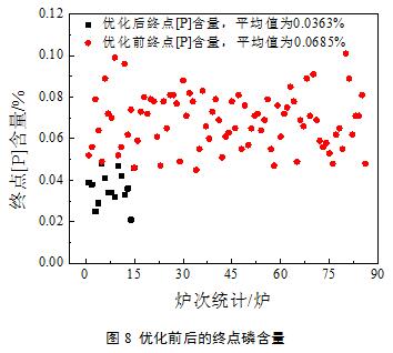 (3)優(yōu)化后對(duì)終點(diǎn)磷含量的影響