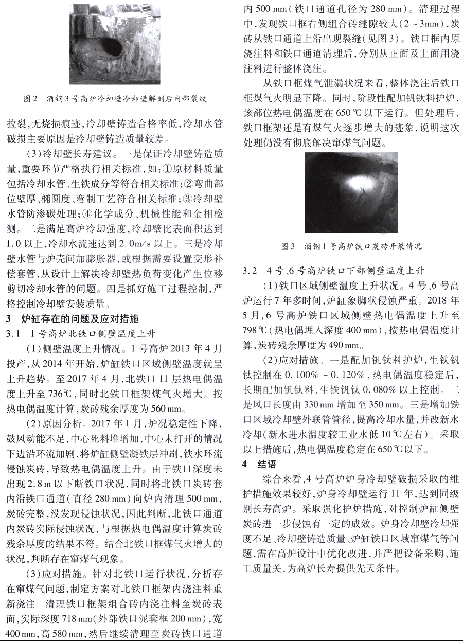 酒鋼高爐冷卻壁及爐缸存在的問題簡析