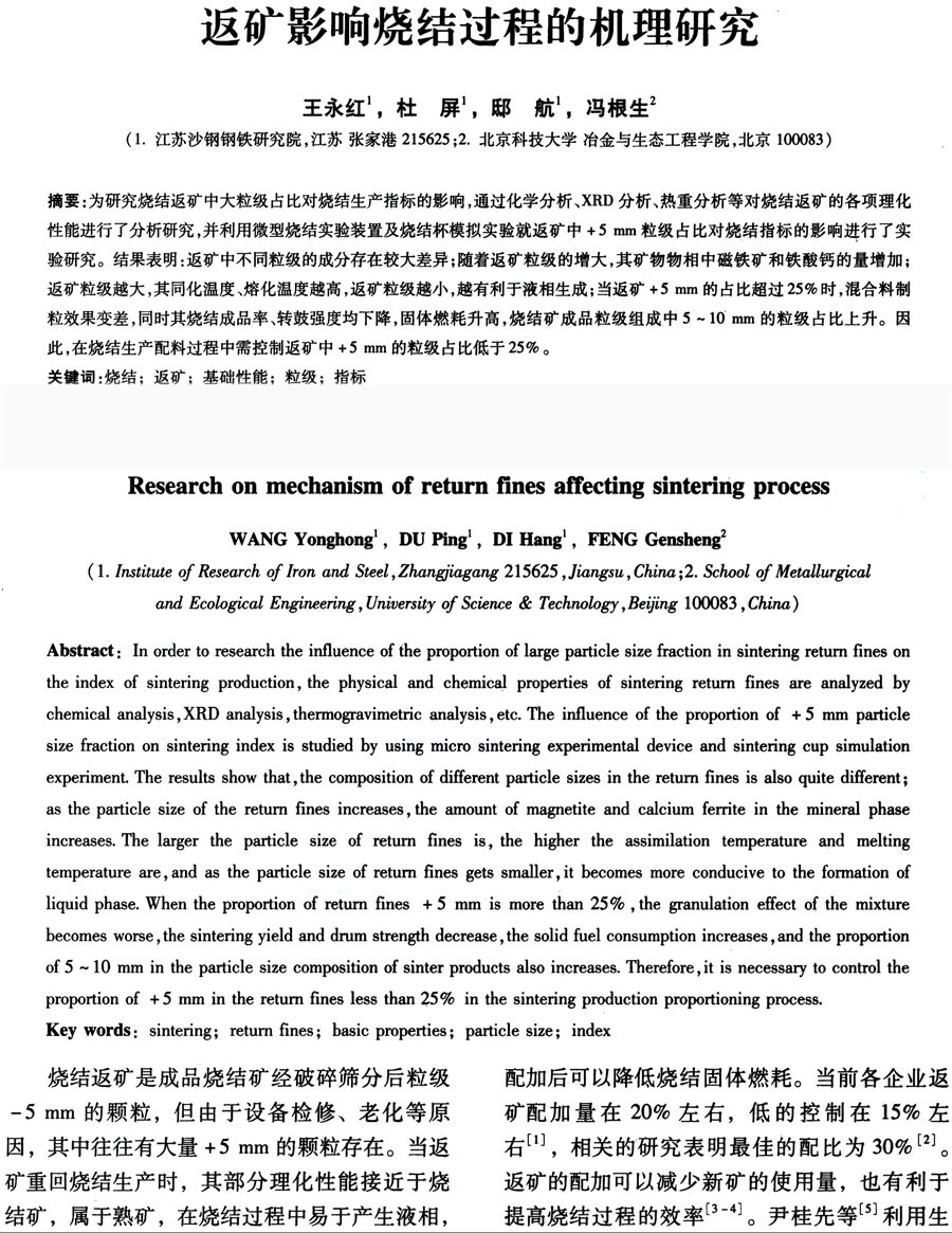 返礦影響燒結(jié)過程的機理研究