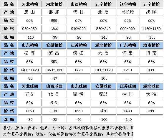 【東北地區(qū)】本周東北鐵精粉市場(chǎng)跌勢(shì)加劇,后期市場(chǎng)基本處于停滯狀態(tài)。