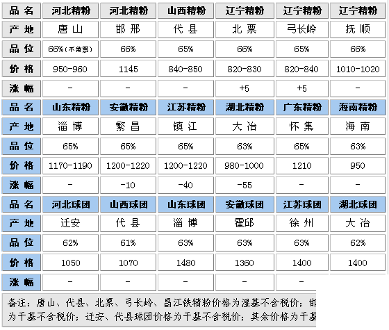 - 6日東北市場(chǎng)部分鋼廠鐵精粉采購(gòu)價(jià)格