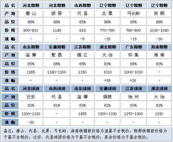 本周國產(chǎn)鐵礦石市場穩(wěn)中趨弱格局凸顯,成交較為低迷,市場可流通資源緊缺,悲觀情緒蔓延。北方粉市弱勢加劇,局部凸顯有價無市。南方市場觀望有增!緡鴥(nèi)重點區(qū)域鐵礦石運行狀況一覽】【華北…