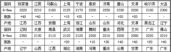 表二:一周國內(nèi)主流城市廢鋼價格變化匯總