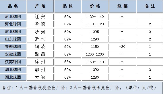 - 13日河北北部地區(qū)部分鋼廠鐵精粉采購(gòu)…