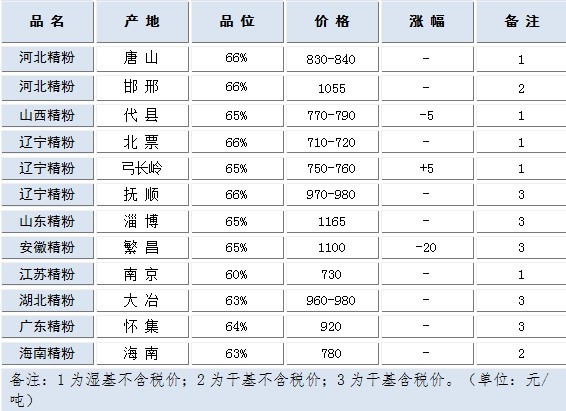 - 6日東北市場(chǎng)部分鋼廠鐵精粉采購(gòu)價(jià)格