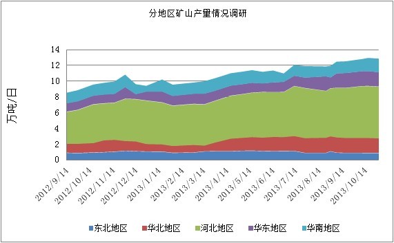 河北地區(qū):十八大臨近召開,繼環(huán)保整頓后地方政府再度加嚴(yán),大部分地區(qū)炸藥限供。唐山和承德、保定、張家口、石家莊地區(qū)中小礦山大多停產(chǎn),大礦受影響較小,基本正常生產(chǎn);邯邢礦山影響相對較小,但市面選礦廠停產(chǎn)已過半;整體上市面資源表現(xiàn)的較為緊缺,十八大影響礦山生產(chǎn)預(yù)計將持續(xù)15-20天。
