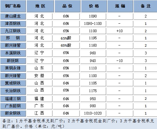 【國內(nèi)重點區(qū)域鋼廠采購價調(diào)整狀況一覽】