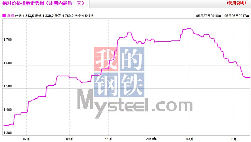 表一:近一年來(lái)Mysteel廢鋼絕對(duì)價(jià)格指數(shù)走勢(shì)圖