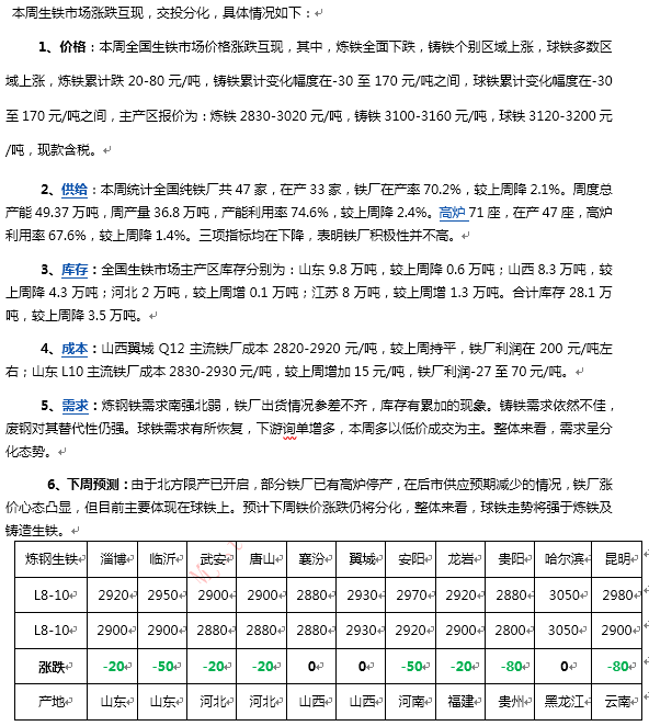 全國(guó)生鐵市場(chǎng)周評(píng)(2019.9.2-9.6)