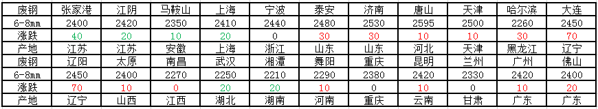 浙江廢鋼:本周浙江廢鋼震蕩運行,成交偏弱,現市場不含稅:爐料2460-2510元/噸,重廢2380-2450元/噸,中廢2280-2300元/噸,統(tǒng)廢1930-1960元/噸;陶莊冷/熱軋沖料2420元/噸,矽鋼片2480元/噸,紅粉料2550元/噸,鋼板角料2580元/噸,鋼筋頭2410元/噸,鋼筋切粒2560元/噸,鋼刨花2130元/噸,普刨花2080元/噸,鐵屑1930元/噸,機械生鐵2380元/噸,不含稅。鋼廠方面,本地長流程鋼廠庫存相對充足,而短流程則到貨備庫不佳,一方面主要是受場地限制影響,另一方面市場收貨價格不穩(wěn)定。而市場上,商家收貨不佳,且昨日日照鋼鐵、基地采購上調,讓部分貿易商看漲情緒濃厚,但從螺紋鋼現貨價格來看,價格震蕩運行,對于廢鋼難有支撐,預計下周本地廢鋼市場維持穩(wěn)中盤整態(tài)勢。