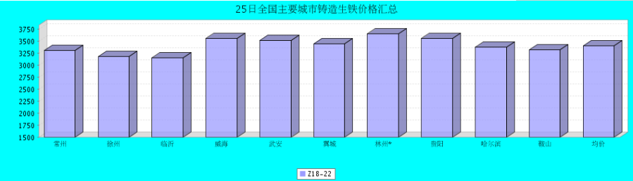 | 鑄造生鐵 | 常州 | 徐州 | 臨沂 | 威海 | 武安 | 翼城 | 林州* | 貴陽 | 哈爾濱 | 鞍山 | 均價 |