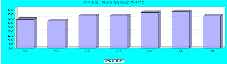 | 冶金海綿鐵 | 河南 | 河北 | 萊蕪 | 淄博 | 山西 | 東北 | 均價 |