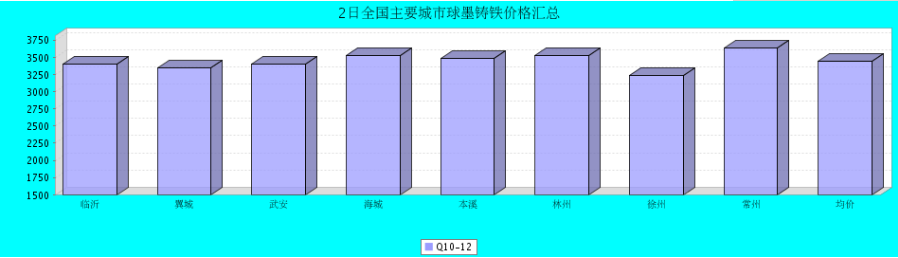 | 球墨鑄鐵 | 臨沂 | 翼城 | 武安 | 海城 | 本溪 | 林州 | 徐州 | 常州 | 均價(jià) |