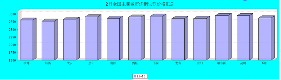 | 煉鋼生鐵 | 淄博 | 臨沂 | 武安 | 唐山 | 襄汾 | 翼城 | 安陽 | 龍巖 | 貴陽 | 哈爾濱 | 昆明 | 均價 |