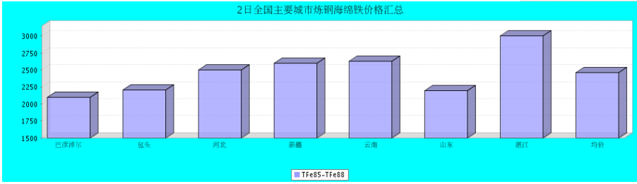 2日全國主要城市煉鋼海綿鐵價格匯總