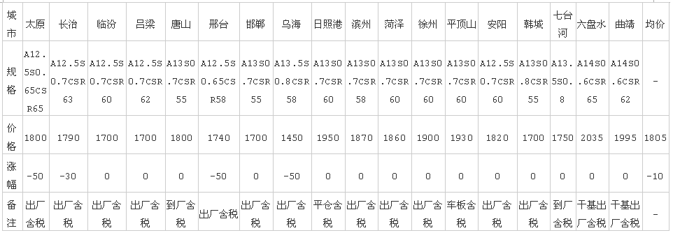 17日全國主要城市方坯價格匯總