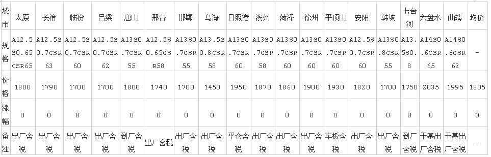 4日全國主要城市球墨鑄鐵價(jià)格匯總