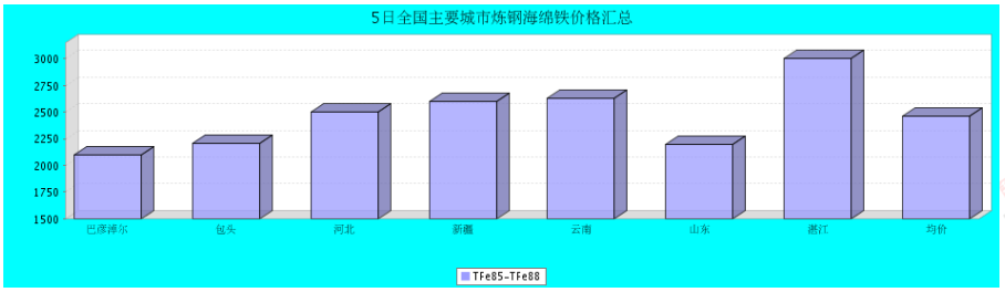 5日全國(guó)主要城市煉鋼海綿鐵價(jià)格匯總