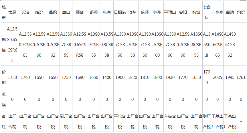 13日全國(guó)主要城市冶金焦價(jià)格匯總